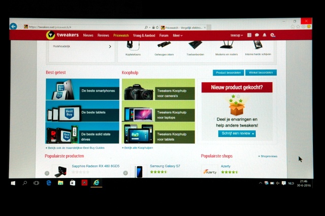 De kleuren van het scherm helder en contrastrijk. Een andere indicatie dat het scherm standaard best goed is ingesteld is het feit dat ik aan de standaard Windows kalibratie weinig heb moeten wijzigen. Alleen aan de gammawaarden heb ik iets moeten aanpassen. De beoordeling van deze gammawaarden waren trouwens sterk afhankelijk van de verticale hoek waarmee je ogen naar het scherm keken.
