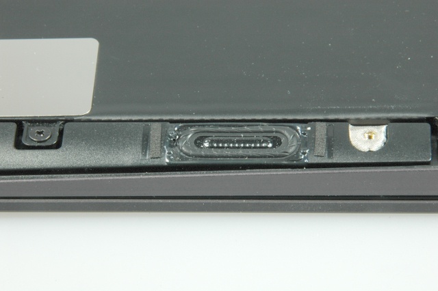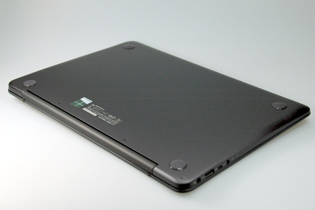 De achterkant wordt eigenlijk afgedekt door het monitorscharnier. Vermeldenswaard is wel dat zich tussen de achterkant van de behuizing en het monitorscharnier een spleet bevindt met een breedte tussen de 1.5 mm en 3 mm. De achterwand van de behuizing achter het scharnier kon hierdoor de vorm van een hol gebogen ventilatierooster krijgen, dat de cilinder van het scharnier in vorm spiegelt. De koeling in de laptop is passief, een rooster over bijna de gehele breedte van de achterzijde kan dus goed van pas komen om warme lucht kwijt te raken.