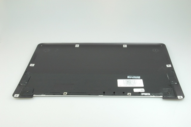 In de linker- en rechterflank van de laptopbodem zijn bovendien ook de speakers verwerkt. Op de bodem zijn verder een laptop typeaanduiding geprint en zijn een opgeplakt serienummer en Windows 10 logo te zien.