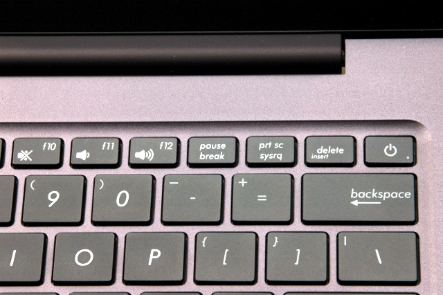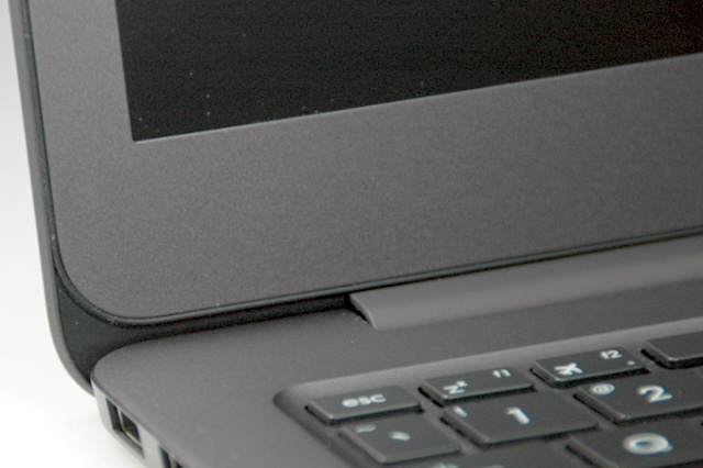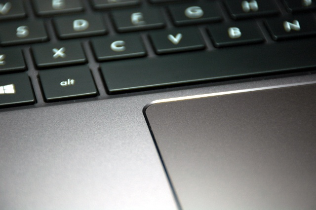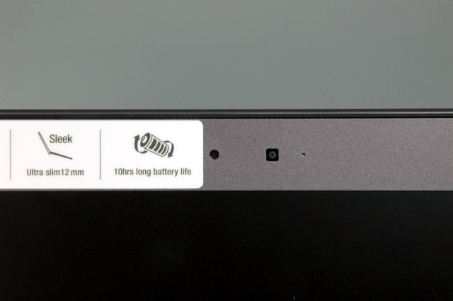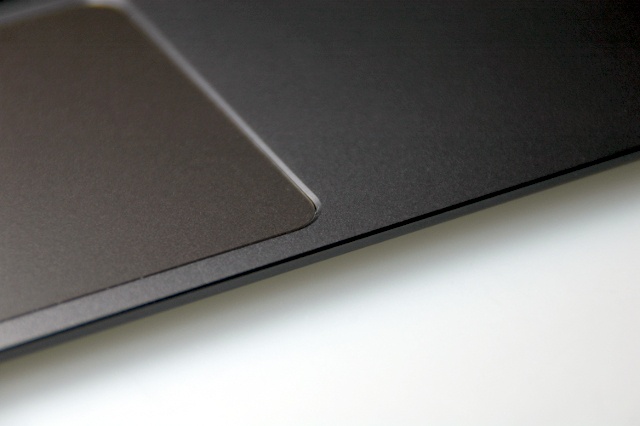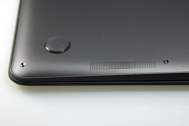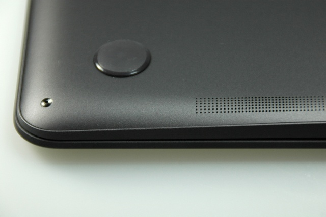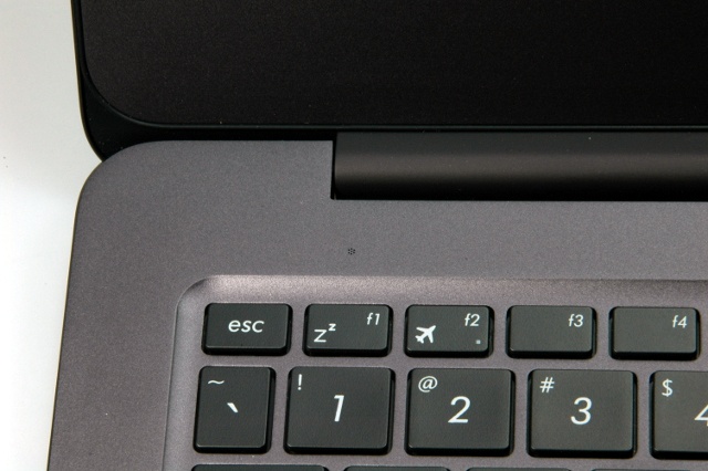Op de bovenzijde van de behuizing zijn drie features te vinden. Het toetsenbord, de touchpad en een minuscuul derde feature, de microfoon. Wie heel goed kijkt vindt deze microfoon achter het toetsenbord, ten opzichte van het laptop midden iets voor het linker uiteinde van het beeldschermscharnier.
