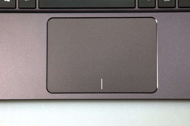 Ook het touchpad is verzonken in de behuizing aangebracht. Het ietwat verzonken zijn van de touchpad zal door sommigen van jullie als een nadeel worden ervaren. Het touchpad is echter zo royaal van afmetingen dat je vingers niet snel tegen haar randen zullen aanlopen. En het kan ook als voordeel worden gezien dat je kan vaststellen dat je naast de touchpad terecht bent gekomen. Bij een andere laptop heb ik een touchpad die gelijk ligt met het oppervlak van de polsondersteuning. Bij dit systeem ben ik nog weleens wazig op de polsondersteuning aan het swipen om erachter te komen dat er niets gebeurt. Een minder goed aspect aan de touchpad is de zware feedback bij het klikken. Die is zodanig zwaar dat ik mezelf erop betrapte dat ik uitweek naar de rechtermuisknop toets die zich rechtsboven de touchpad op het toetsenbord bevindt.