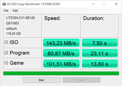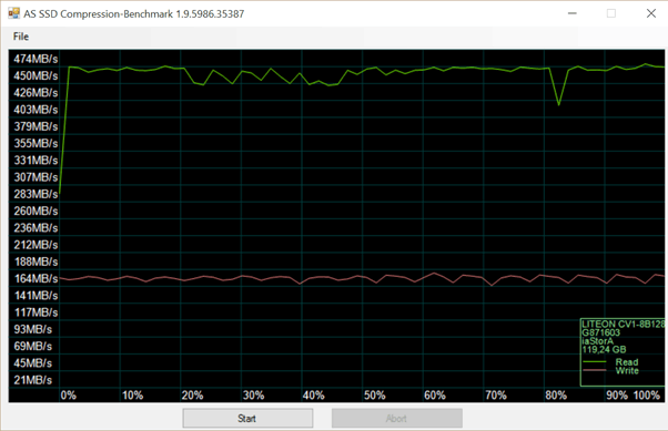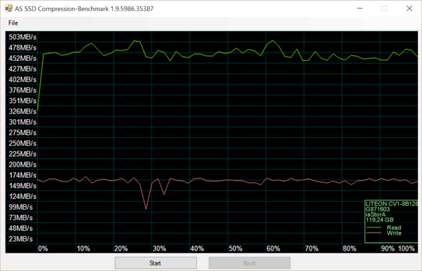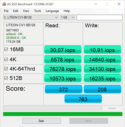 LITE-ON CV1-8B128. LITE-ON? Gewend als ik ben aan merknamen als Samsung en Crucial gingen mijn wenkbrauwen even omhoog. Om de resultaten te kunnen vergelijken met de door LITE-ON opgegeven specificaties hieronder wat metingen met AS SSD.
