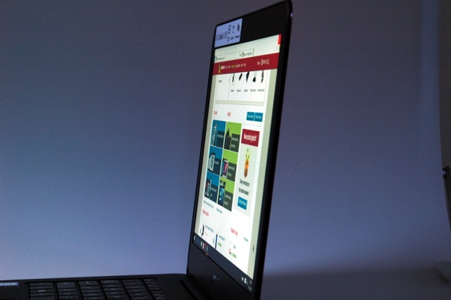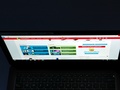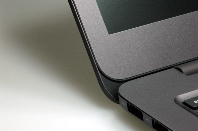 Zoals gezegd is het beeldscherm gevat in een aluminium vormdeel. Wat ik verwacht is het vormdeel eerst in model geperst, waarna de ruimte voor de display is uitgekamerd tot boven het niveau waar het scharnier het scherm beetpakt. Het scherm en het scharnier lijken twee inserts die in dit aluminium vormdeel geplugd worden. De insert met het scherm eindigt vlak boven het scharnier. De randen rond het scherm zijn niet klein. Links en rechts zijn ze gelijk, De bovenrand is dikker, en de onderrand, gemeten boven het scharnier, is nog dikker. Momenteel is het hebben van kleine randen een voordeel dat vooral wordt gedreven door een smallere totale afmeting van de laptop en een in verhouding groter scherm. Brede randen hebben echter ook voordelen. Zo geeft een bredere rand rond het scherm meer rust voor de ogen en zorgt een grotere breedte van het beeldscherm indirect voor een grotere ruimte voor en rond het toetsenbord. Laten we dus de noodzaak voor dunne schermranden wat rationaliseren.