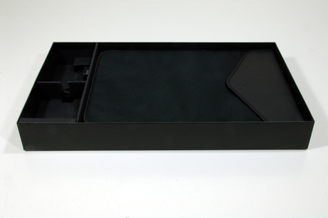 Wordt ook de laptop etui weggehaald, dan zie je daaronder nog een gebruikershandleiding, een garantiekaart en een veegdoekje.
