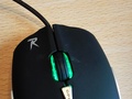 Achteraan de muis zie je het Gamdias Logo, waar een blijvend vrij fel geel ledje achter brand. In het scrollwheel zit een RGB ledje wat je helaas niet vrij kan programmeren. Deze geeft een andere kleur per dpi-instelling.