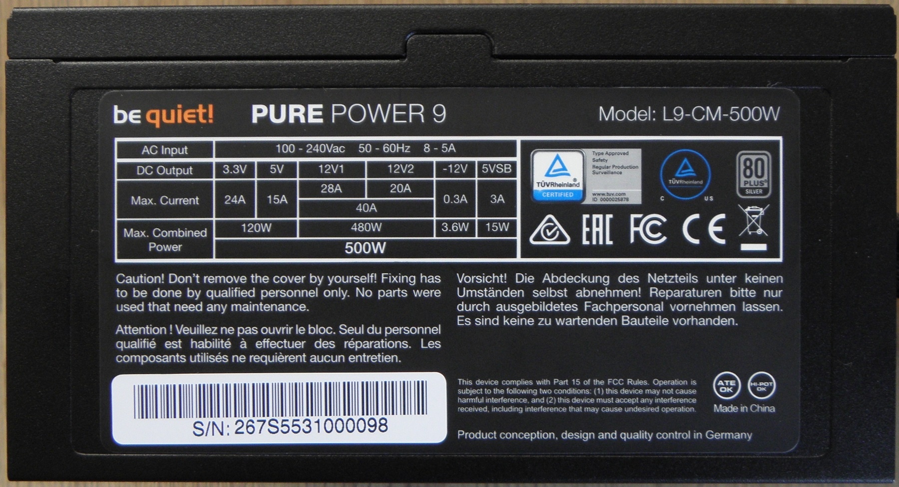 Vandaag een review van de 500W versie van de nieuwe be quiet! Pure Power 9 CM serie gemaakt door FSP. Deze nieuwe Pure Power 9 CM serie is verkrijgbaar in een 400, 500, 600 en 700W versie. Ook zijn ze verkrijgbaar in een niet modulaire variant met de weinig verrassende naam Pure Power 9. De 400, 500, 600 en 700W versies zijn identiek op het niet modulaire na. De niet modulaire 300W en 350W versies zijn twee totaal andere voedingen en zijn behalve een vergelijkbare naam en uiterlijk totaal verschillend intern. Door het ontbreken van individuele spanningsregulatie in de vorm van DC-DC is de voeding normaal gesproken niet compatibel met de C6 en C7 power states van de moderne Intel CPU's. Verderop in de review zul je echter lezen dat dit niet het grootste probleem van deze voeding is en waarom je beter een andere voeding kunt nemen. In deze review zullen we daarom weer kijken hoe deze voeding presteert onder verschillende belastingen en hoe het zit met de kwaliteit van de voeding. Het testen is weer gedaan bij Cooler Master in Eindhoven waar ik hun dure apparatuur mag gebruiken, waarvoor dank. ![]() Ben je zelf opzoek naar een voeding of wil je nog meer te weten komen over voedingen, kijk dan eens in Voeding advies en informatie topic - Deel 33 |