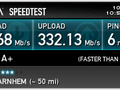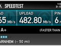 Ons internet Abonnement is 500/500 mbit, dus de snelheden zijn echt het maximale van de laptop. De bekabelde verbinding is waarschijnlijk sneller, maar wat de maximale snelheid tussen twee pc's heb ik niet getest. Tijdens deze speedtesten waren er waarschijnlijk meer gebruikers online, hierdoor kunnen de resultaten een beetje afwijken. Ik verwacht dat dit niet veel zou zijn.