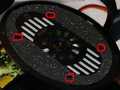 Vervolgens zitten er op 4 plekken onder het foam schroefjes verborgen. Door voorzichtig te drukken op de punten waar ze ongeveer zitten vind je ze wel. Het zijn kleine Philips kruiskop schroefjes.