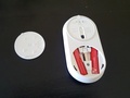 De muis is zoals al bij de omschrijving staat niet een pure Bluetooth 4.0 muis maar heeft tevens de mogelijk voor een 2,4 Ghz verbinding. Het USB ontvangertje zit net als de 2 mee geleverde batterijen onder het klepje verborgen. Initieel zit er om de plek waar de laser zit ook nog een sticker met informatie maar daar deze in het chinees is heb ik die na een aantal seconden maar verwijderd. Verder vinden we onderop de knop om te verbinden via bluetooth en een aan-uit schakelaar.
