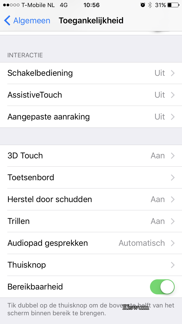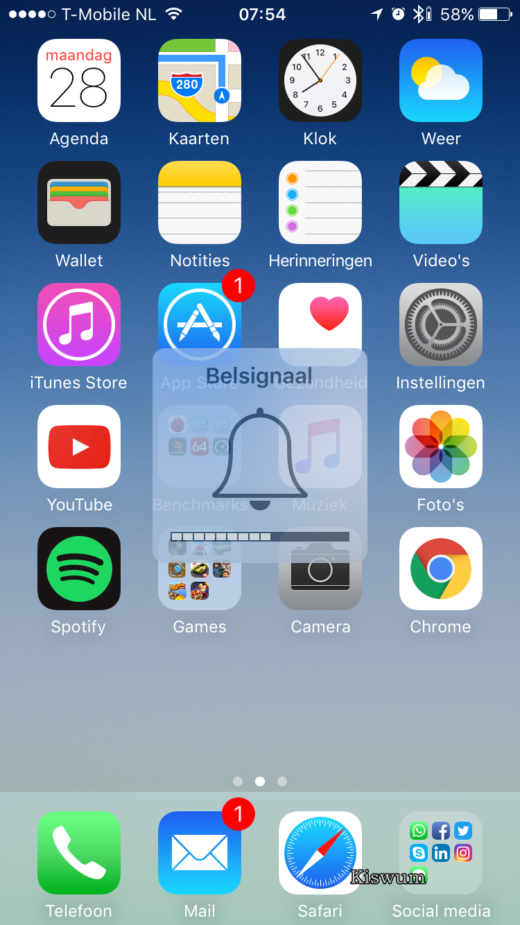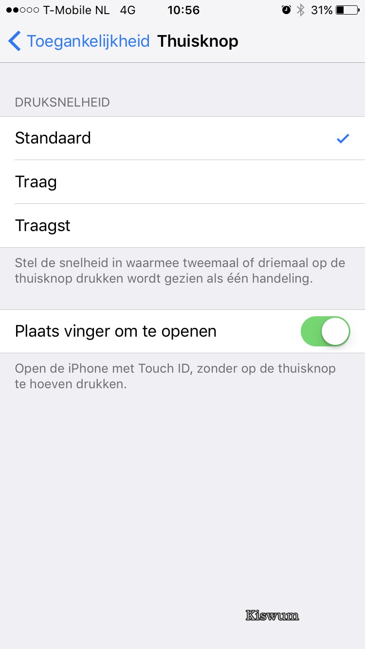 Even terug naar de homeknop, deze is voorzien van de perfecte vingerafdrukscanner. Een kort tikje is al voldoende om de vingerafdruk uit te kunnen lezen. Ik geef hierbij graag mijn complimenten aan Apple die de hard- en software van de vingerafdrukscanner perfect op elkaar hebben afgestemd. De vingerafdrukscanner wordt overigens pas actief als het scherm aan staat. Over het algemeen is het voldoende om de telefoon op te tillen om het scherm automatisch aan te laten gaan (dit staat standaard aan in de instellingen).