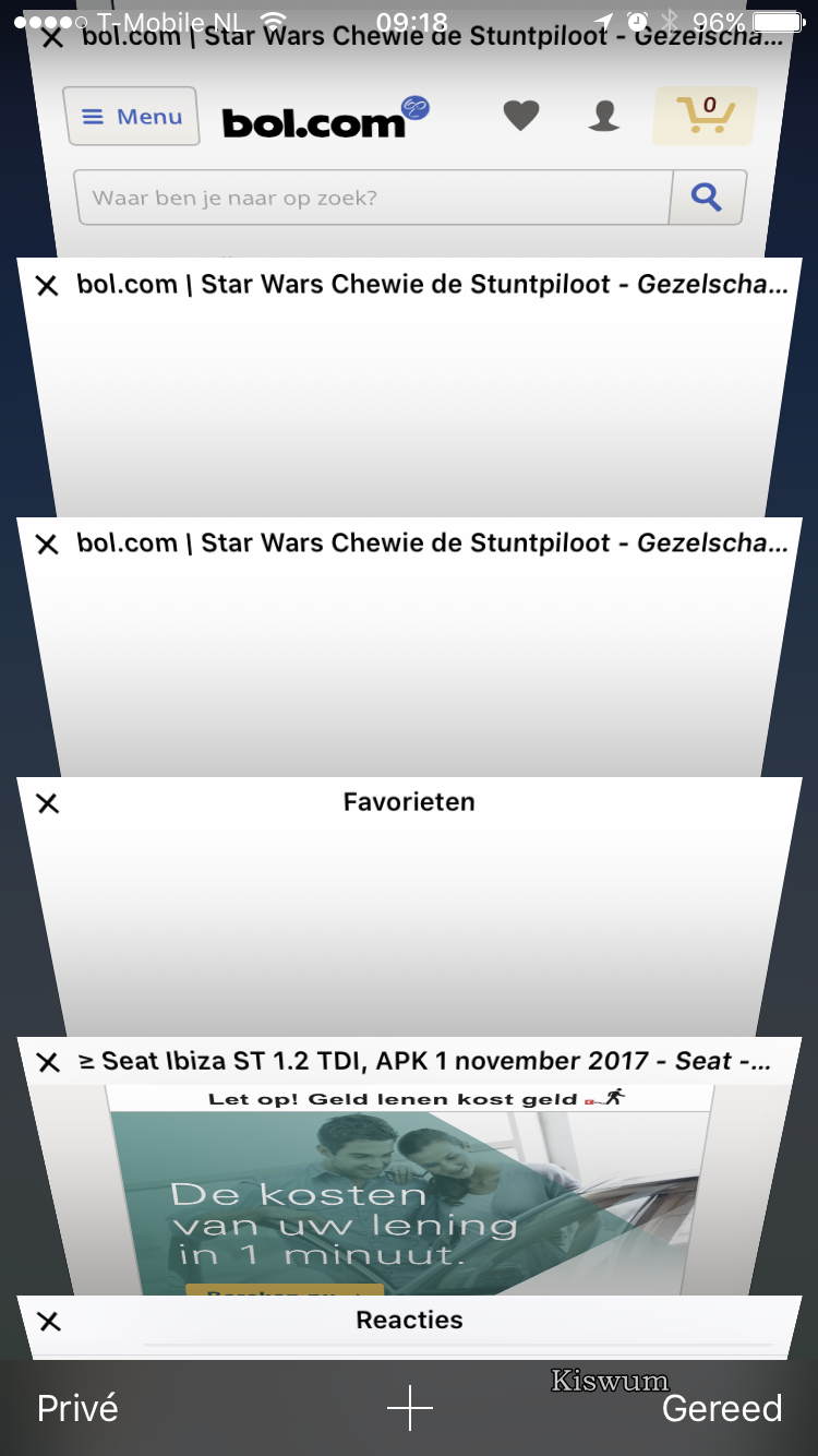 De Safari browser mist een aantal functies die naar mijn idee redelijk standaard zijn. De pagina herladen door naar beneden te schuiven is niet beschikbaar en snel naar beneden scrollen via een ingebouwde functie is er ook niet. Snel omhoog scrollen is echter wel mogelijk. Dit kun je doen door in een app op het klokje te drukken. Dit geldt niet alleen bij de browser, maar ook voor andere (externe) apps.