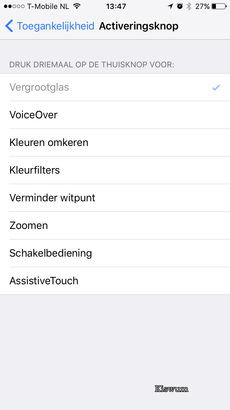 Als je twee keer op de homeknop drukt, dan zie je een geschiedenis van alle applicaties die je hebt geopend. Als je drie keer op de knop drukt, dan kom je uit bij het vergrootglas. Het lijkt erop dat de camera app wordt gestart, maar de interface ziet er net iets anders uit. De functie van 3 keer klikken kan eventueel nog worden aangepast via de opties onderin bij