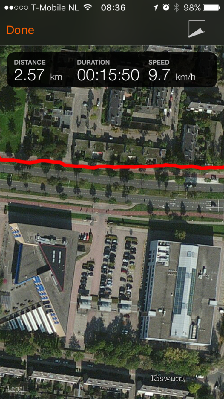 Veel Locatievoorziening opties stonden aan tijdens het testen van de GPS. Mede hierdoor werkt GPS buitenshuis en binnen in de woning zonder problemen. Met de app Sportstracker is bekeken hoe accuraat de GPS daadwerkelijk is. De conclusie is kort. De GPS blijft goed binnen een straal van 2-5 meter van mijn afgelegde route. De gerapporteerde snelheden zijn accuraat en er zijn geen vreemde snelheidspieken te zien.