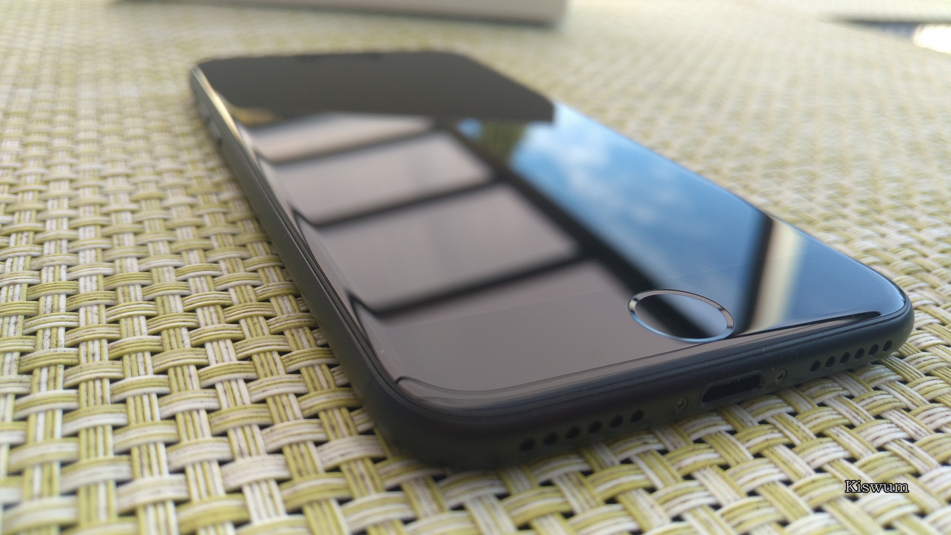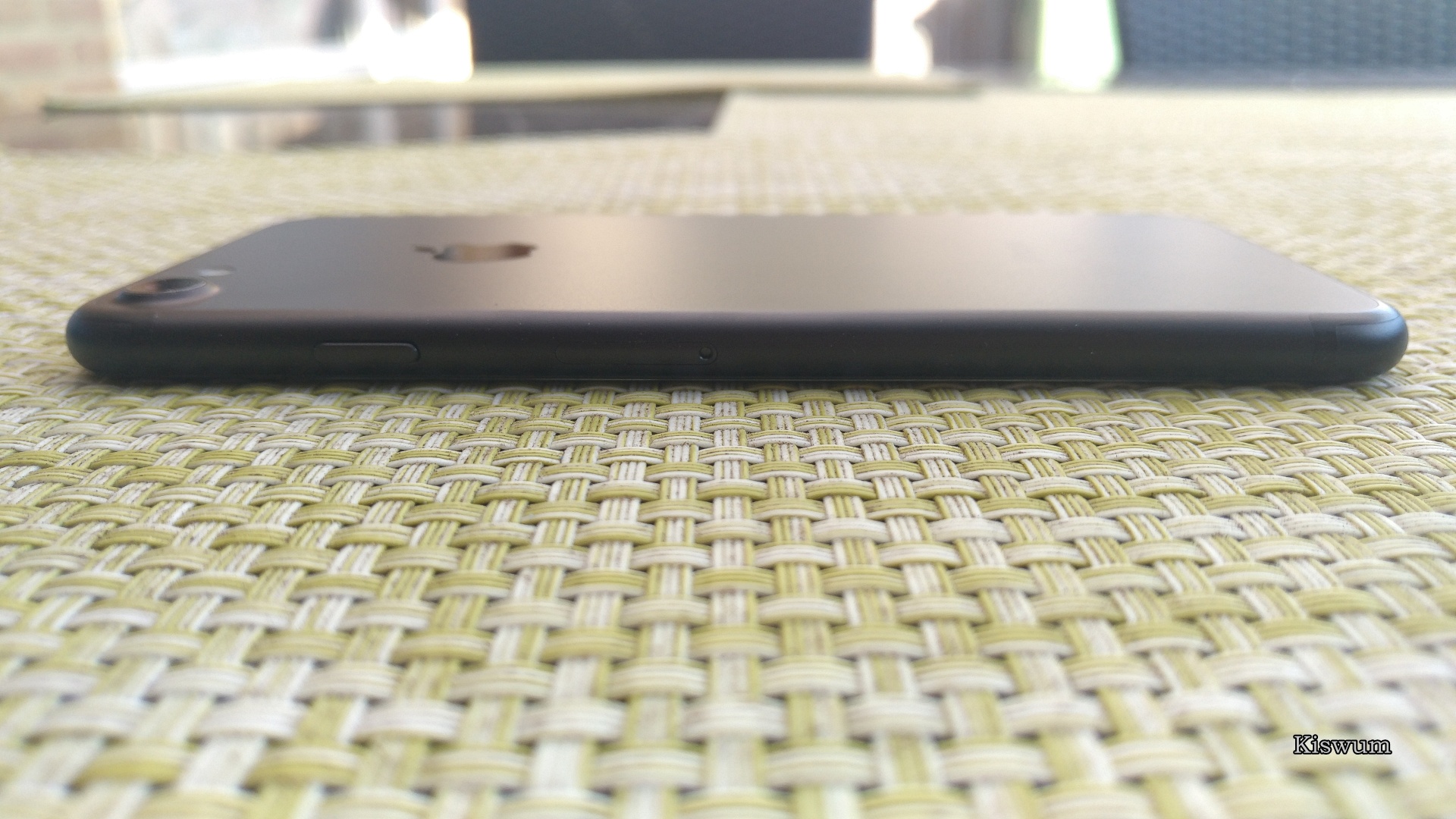 De telefoon ziet er goed uit en voelt aan zoals een premium telefoon aan moet voelen. De telefoon ligt goed in de hand en het koude metaal laat je steeds merken dat je geen kunststof telefoon in handen hebt. Als de telefoon uit staat, is de voorkant een mooi geheel. Het scherm is aan de zijkanten voorzien van 2,5D glas, zodat het goed overloopt naar het zwarte metalen frame. De antennes zijn in dezelfde kleur gespoten als het frame. Hierdoor vallen ze niet op bij deze matzwarte uitvoering. Doordat alles goed aansluit en de kleur zwart geen vijftig verschillende tinten heeft, vind ik de iPhone 7 er mooi en uniek uitzien.