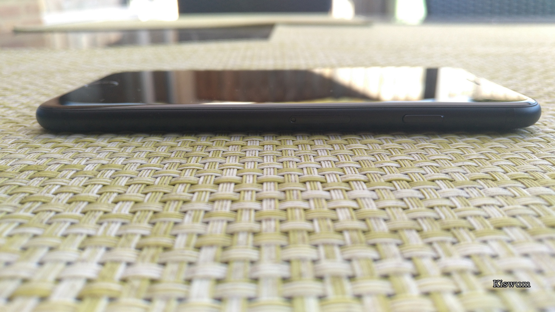 • De rechterkant is voorzien van de aan-/uit knop en sim-tray.