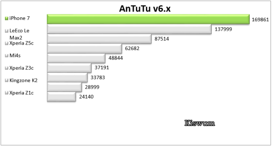De Apple A10 is een zeer snelle processor. Ondanks het gebruik van 'slechts' 4 cores, staat de CPU in bijna alle benchmarks ruim bovenaan. De warmte van de telefoon is voelbaar. Dankzij het frame en achterkant, kan de warmte prima worden verdeeld over de gehele telefoon.