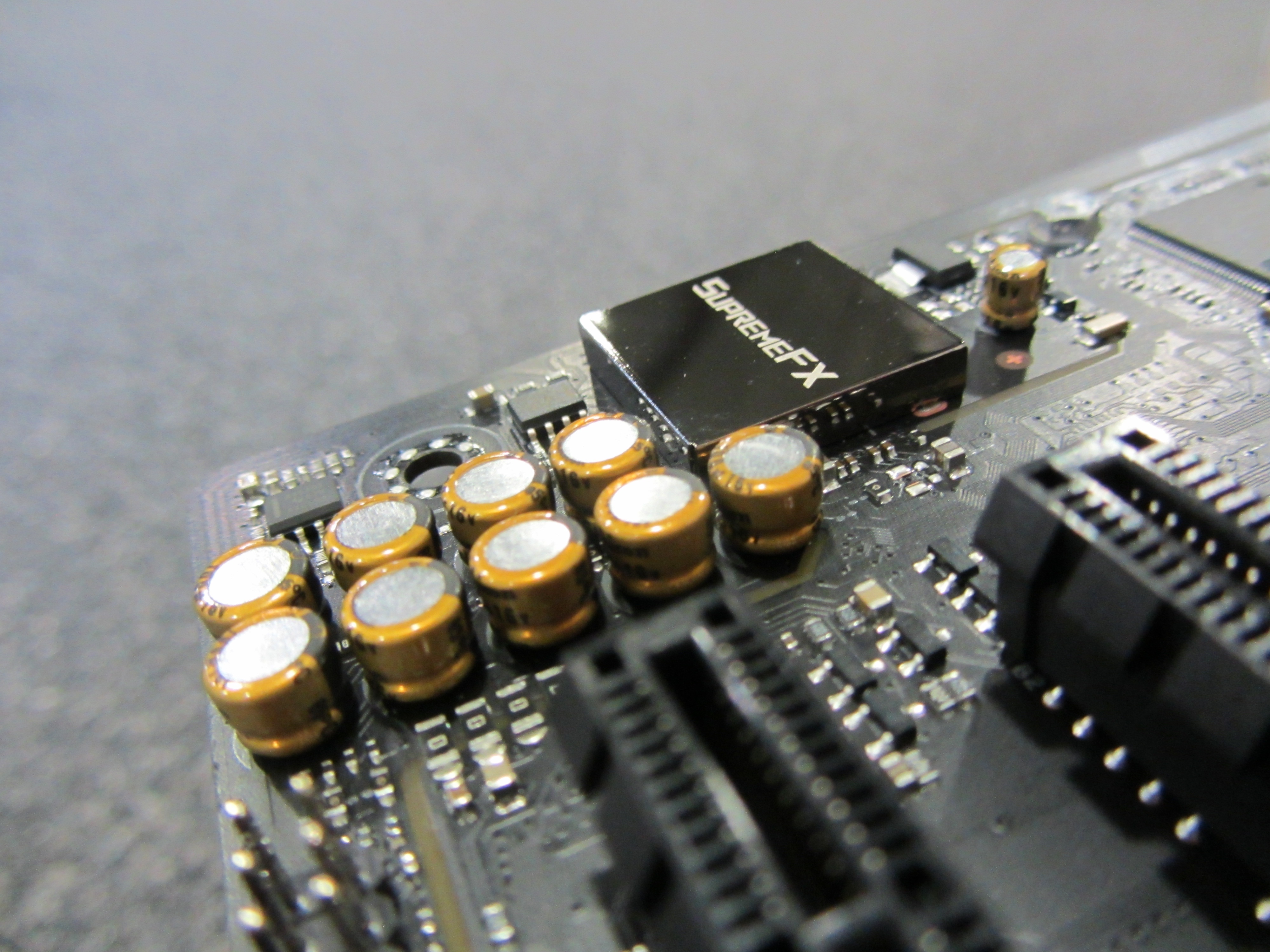 Het audiogedeelte gaat op de Asus ROG / Strix moederborden door het leven als SupremeFX. Voorzien van een S1220A HD CODEC, dubbele op-amps van Texas Instruments de OPA1688 en RC4580, De-pop MOSFET (veldeffecttransistor), Nichicon condensatoren en een wat kleiner elektromagnetisch schildje. De SupremeFX S1220A codec heeft een 113 dB signaal-ruisverhouding op de lijn-in-aansluiting, ter vergelijking met de standaard ALC1220 die dit op 108dB doet.