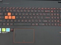 Het toetsenbord voelt erg stevig en typt lekker. Bij hard indrukken veert het geheel zeker niet mee, en de toetsen geven lekkere 'tikjes' bij het typen. Volgens ASUS moet je tot 30 toetsen tegelijk in kunnen drukken die de laptop kan registreren. Helaas gaan mijn gameskills nog niet zover dat ik tegelijkertijd 30 spells kan lanceren, maar ik geloof ASUS graag. Ik loop in zowel typen als gamen nergens tegen problemen aan.
