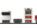 ioDeze Gaming M7 is het eerste bord dat ik in mijn handen heb gehad waarbij er geen USB 2.0 aansluitingen meer standaard zijn aangebracht. Gelukkig is hiermee een enorme stap gemaakt naar het standaard maken van USB 3 en word er geen ruimte onnodig verspilt aan oude technologieën. Dit mooie bord van MSI heeft tevens geen DVI aansluiting meer wat voor veel mensen (zoals ik) toch een beetje jammer is, gezien de monitoren die ik heb geen HDMI aansluitingen hebben zou ik dus gebruik moeten maken van adapters om het geheel dan toch aan te sluiten op mijn huidige monitoren. Toch kan ik de twee aanwezige HDMI poorten alleen maar een voordeel voor dit bord noemen om dezelfde reden als hierboven bij de USB poorten, het is nou eenmaal de toekomst die een grote stap vooruit geschopt moet worden.