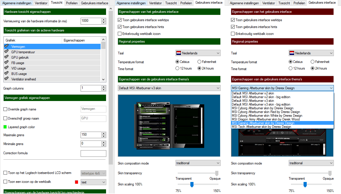 Onder het kopje toezicht heb je de mogelijkheid om aan te geven wat je allemaal wilt monitoren van je computer. En dat zijn er veel met wat je kan monitoren. Onder gebruikers interface kan je zelf kiezen welk thema jij leuk vind om mee te werken. Ook hierbij is er genoeg keus om het aan te passen zoals jij dat wilt.