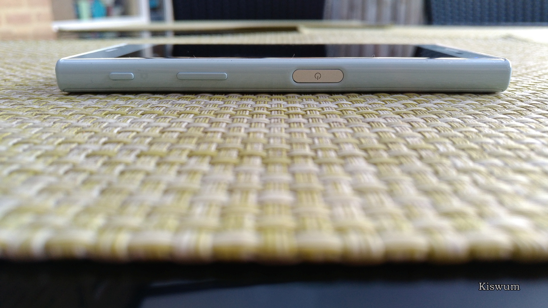 • De rechterkant is voorzien van de aan/uit knop met vingerafdrukscanner, volumeknop en een cameraknop.