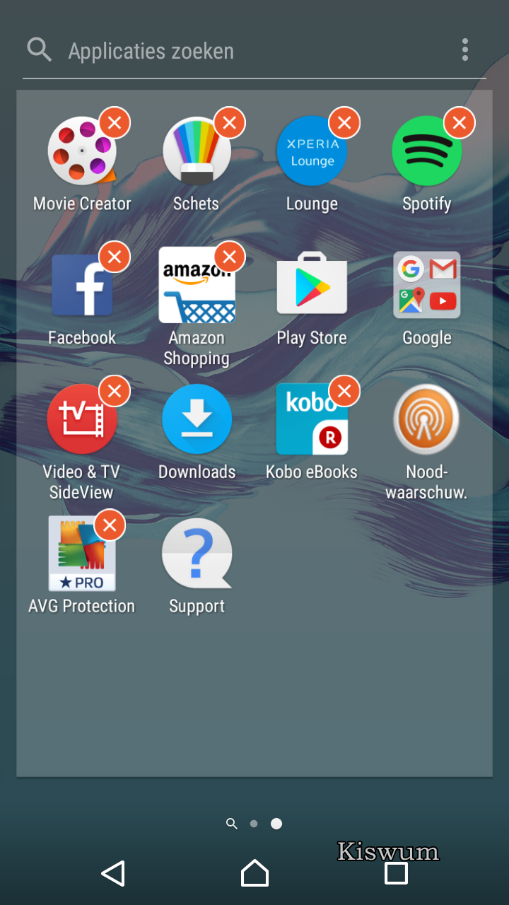 (tip: je kunt ook 'inzoomen' met 2 vingers om apps te kunnen verwijderen op het bureaublad of de appdrawer)