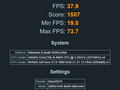 Bij een core clock van +200 MHz en een memory clock van +600 MHz kwam ik na 3 benchmarks op 1440P ultra settings gemiddeld op deze prestaties uit: