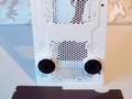 Onderaan en in de voorkant van de behuizing zitten een soort filter tegen stof. Beide kunnen verwijdert worden om proper te maken. Wel heb je daar wat werk aan. Om die rede ga je dat dat waarschijnlijk ook zelden doen. De ventilatoren kunnen in snelheid geregeld worden in DC mode. Dus niet met PWM. Een instelling die gelukkig beschikbaar is op mijn moederbord.