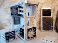 Verder was de kast voor mij eigenlijk te klein. Mijn Noctua NHD14 koeler paste eigenlijk niet in de kast. Ik heb een deel van de isolerende bekleding losgepeuterd om de kast nog dicht te kunnen krijgen. Anders kon ik de zijpanelen er niet terug voor schuiven. Dat vind ik wel jammer, maar ik had geen zin om de kast terug te sturen of om een andere te bestellen.