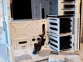Boven tegen de voorkant aan monteer je natuurlijk de cd/dvd drives. Ik heb er zelf geen gekocht. Ergens ligt er nog wel één, maar voorlopig gebruik ik geen cd's of dvd's. Er zitten zwarte hengsels die met wat moeite los komen. Je moet onderaan in het midden stevig drukken en dan kan je het losmaken. Ik denk dat je verder geen schroefjes zou nodig hebben om je optische drive te plaatsen.