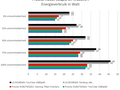 Het energieverbruik heb ik gemeten met de Velleman NETBSEM2, een vrij simpel apparaatje dat desalniettemin relatief nauwkeurig meet tot op een Watt nauwkeurig. In verschillende scenarios heb ik het verbruik gemeten, wat hieronder in de grafiek te zien is. Via het OSD zijn ook verschillende
