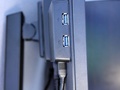 Aan de linkerkant van het scherm zit de USB-hub, bestaande uit 2 USB3-poorten. Zeurmodus: de USB-poorten hadden hier iets beter weggewerkt/ingebouwd kunnen worden, maar gezien de prijs is dit gewoon een prima oplossing. Bovendien zitten de poorten net achter de rand van het scherm verstopt, en valt het dus niet zo op.