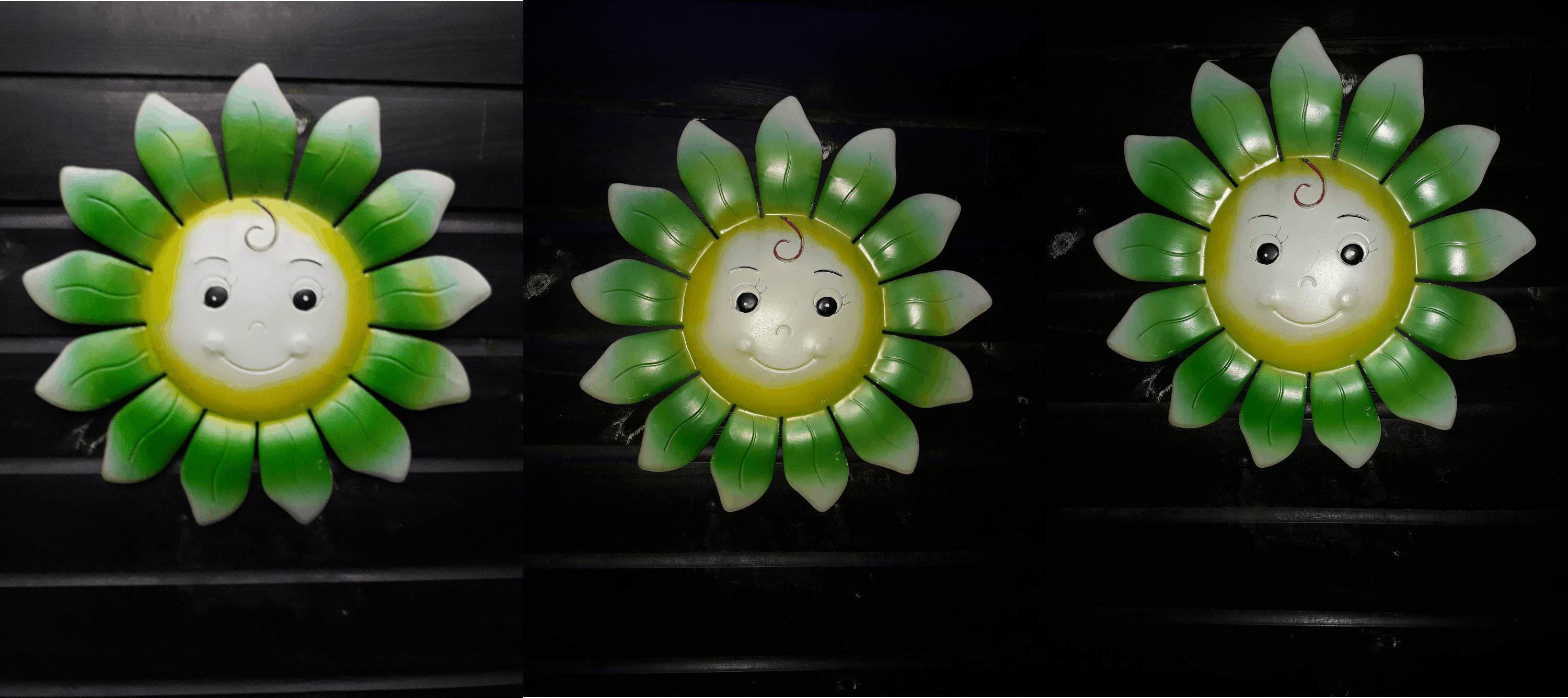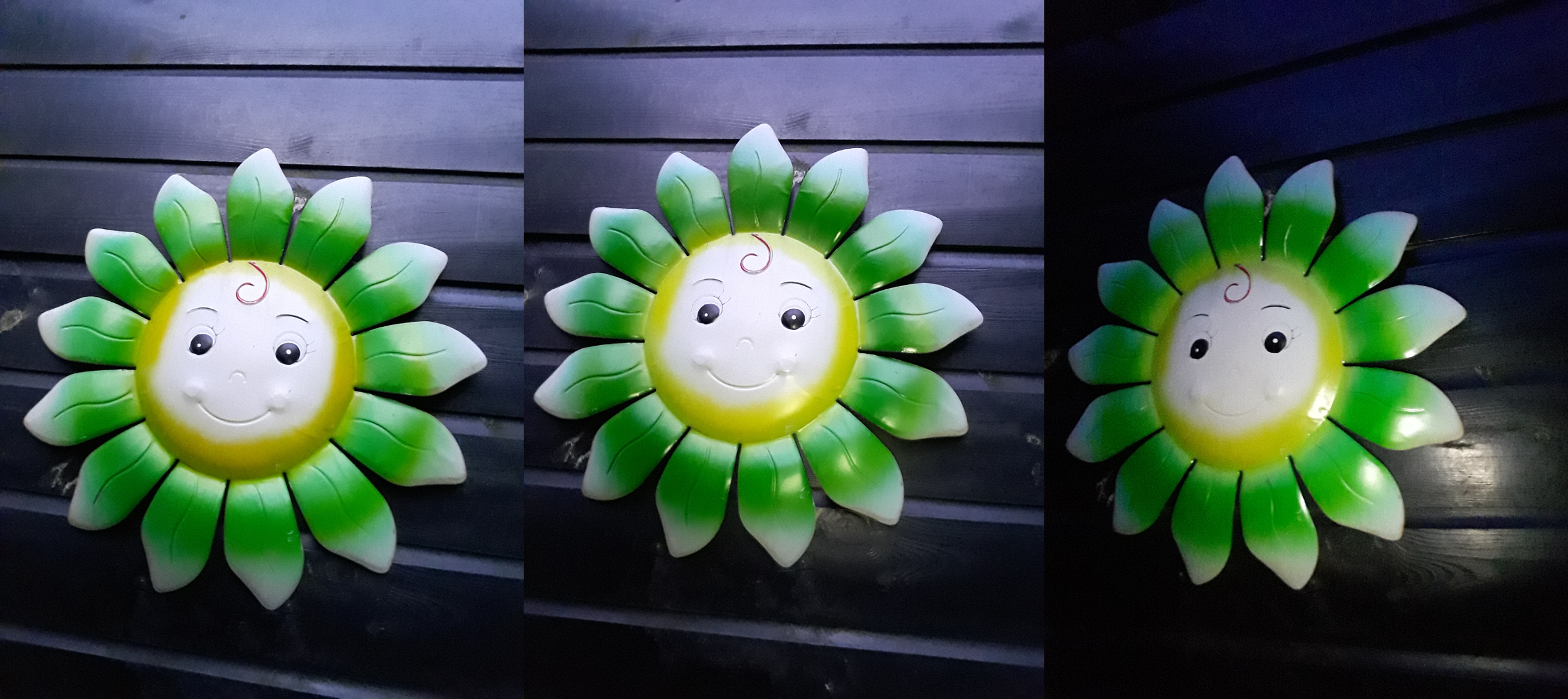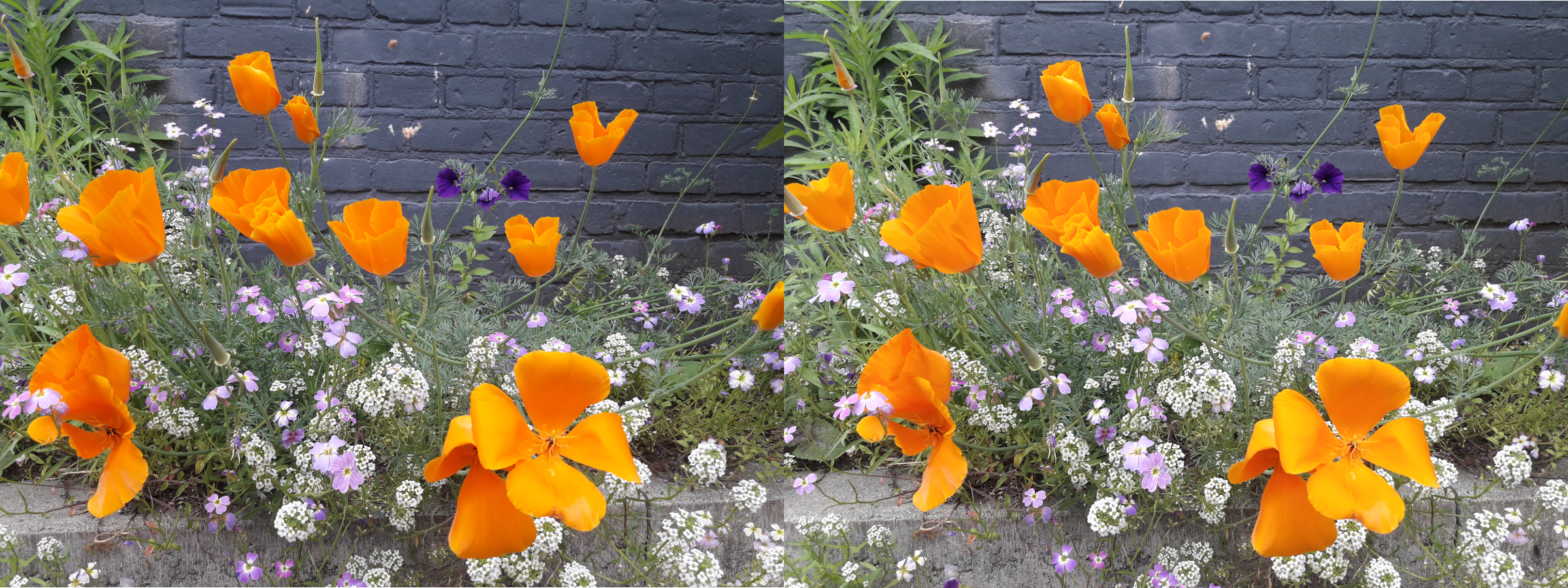 Zwarte achtergrond tijdens het regenen; links normaal, rechts HDR.