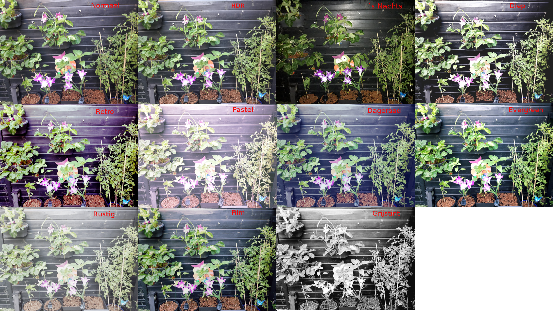 Door naar rechts te swipen, vind je de extra instellingen, waaronder HDR. Naar links swipen kun je de kleur aanpassen.