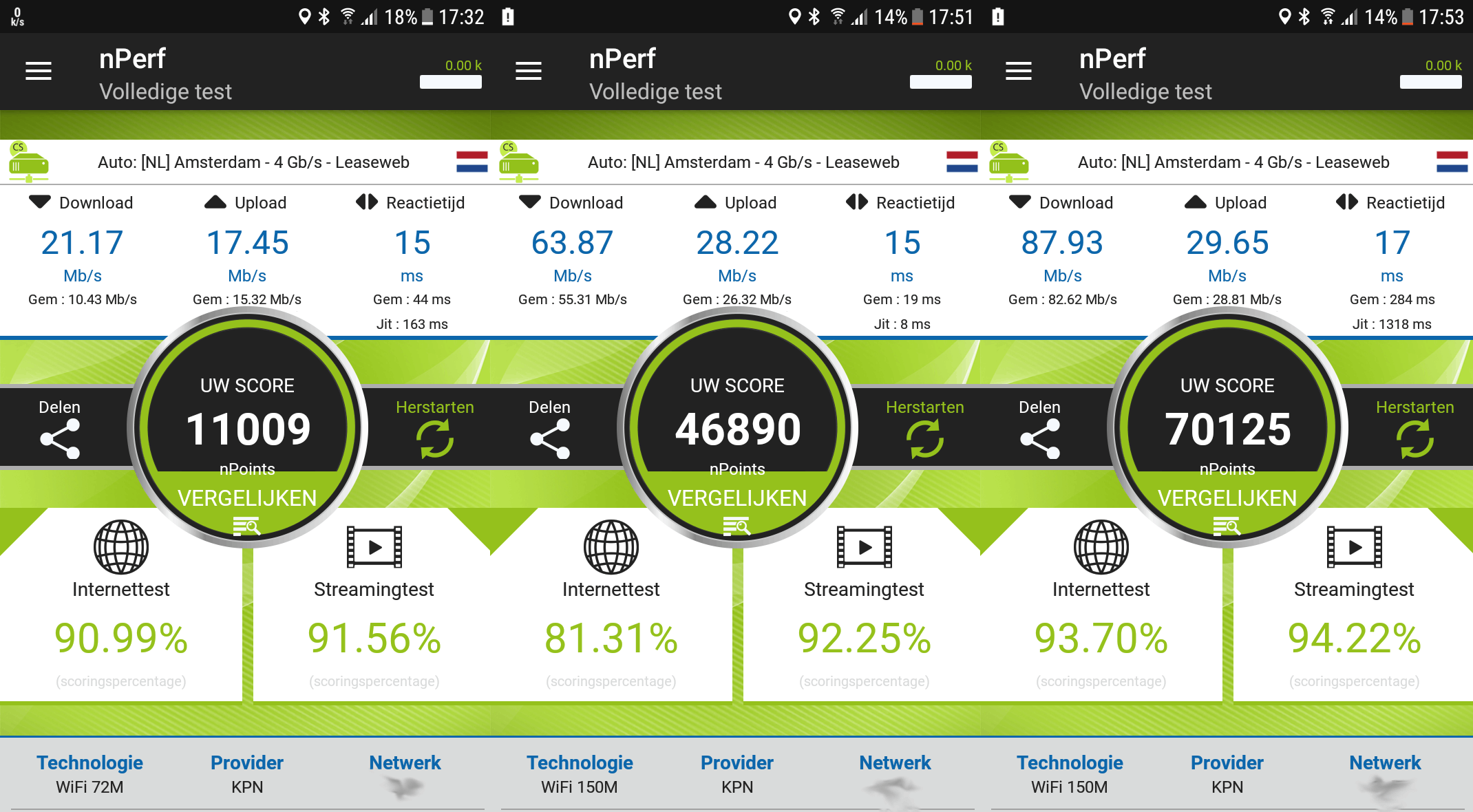 In de trein had ik geen problemen met WiFi. Het was traag, maar verwachtte ook niet veel van. Thuis schommelt het best veel. Heb een aantal testjes uitgevoerd na elkaar, met tussendoor ook mijn S8+ en laptop, en de Xcover 4 had als enige last van zoveel schommelingen. Heb een 100Mb/s download en 30Mb/s upload aansluiting.