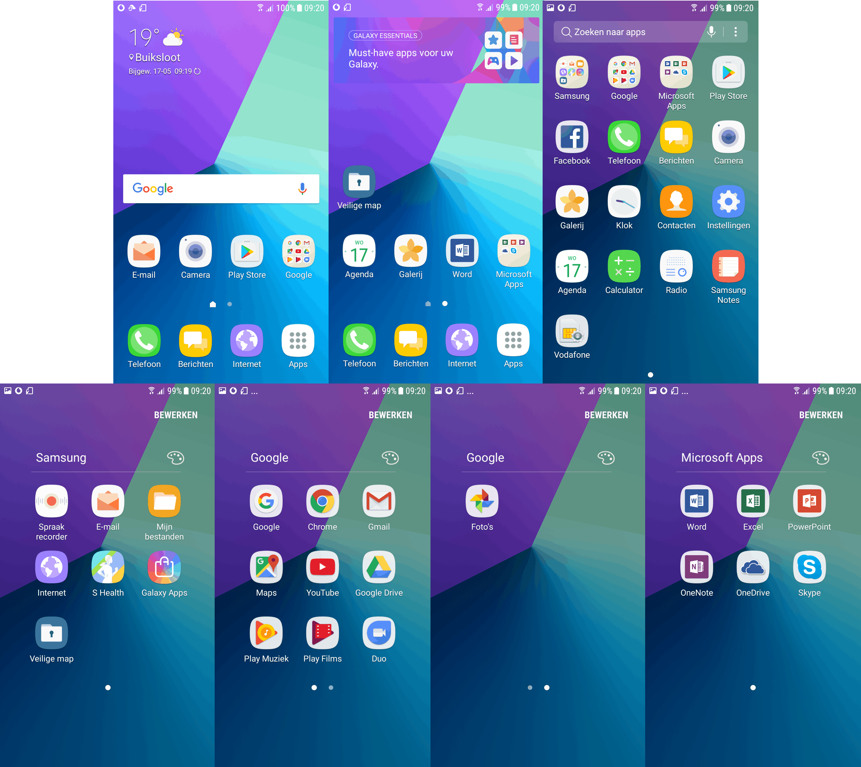 Standaard wordt bloatware meegeleverd van Samsung, Microsoft en Google. Ze zitten netjes in mappen met bijbehorende namen. De Microsoft en Google apps kunnen uitgeschakeld worden. Van Samsung zelf is dit mogelijk bij alleen Samsung Health.