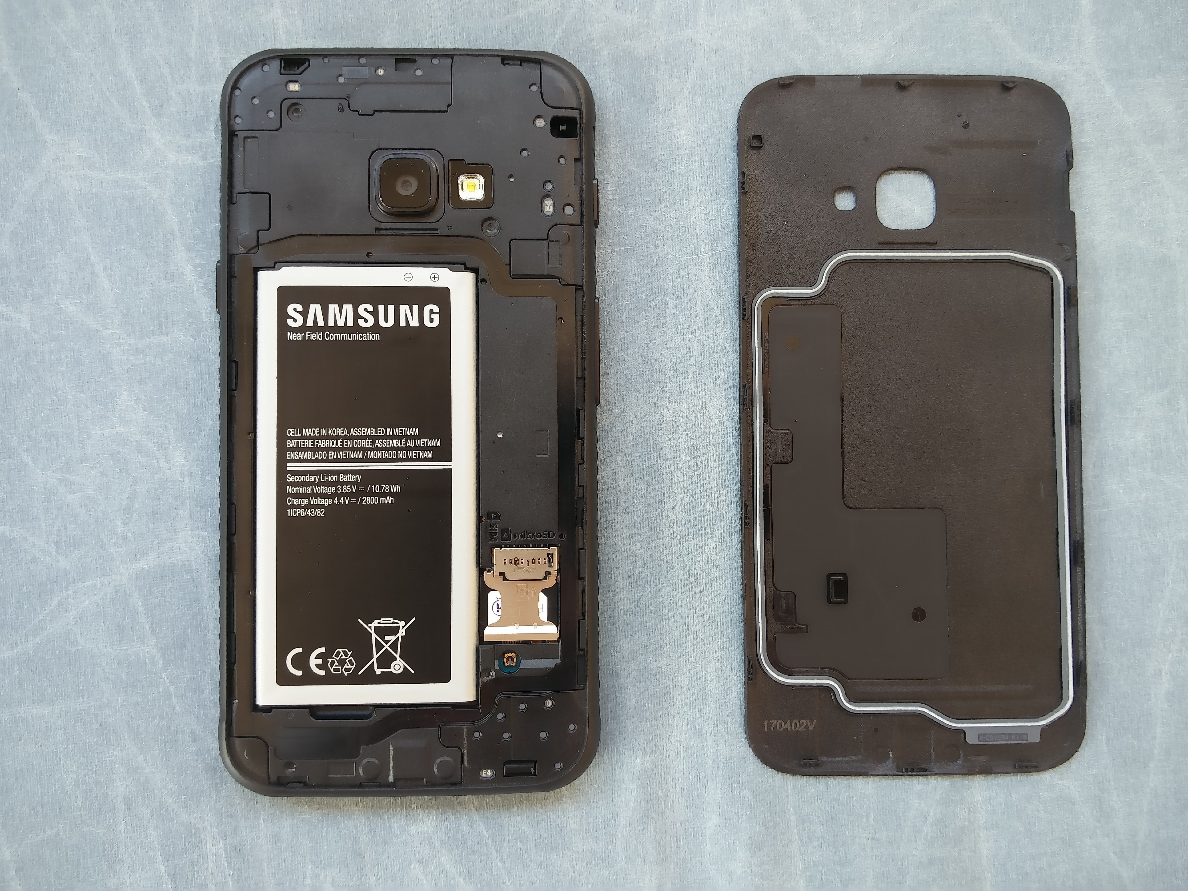 De achterkant van de telefoon is te verwijderen. Daar achter zit een vervangbare batterij en kunnen de simkaart en sd-kaart geplaatst worden. Om de telefoon waterdicht te houden zit er aan de binnenkant van het verwijderbare achterkantje een rubberen randje. De vraag is of dit gedurende de gehele levensduur van de telefoon kan zorgen voor de waterdichtheid.