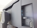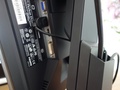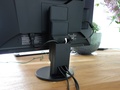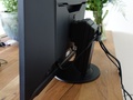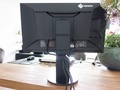 - Het EIZO beeldscherm, met voet en kabel “clip” gemonteerd