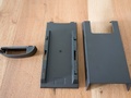 De kabelhouder is een wat groter geheel en heeft zelfs een kleine handleiding nodig! Eerst dient de kabelklem eraf gehaald te worden, door deze naar links (de open kant) schuiven. Nu kan de kabelhouder via de bovenkant op dezelfde locatie in de voet geschoven worden. Deze kabelhouder bestaat uit twee delen: Het eerste deel zit in de voet geschoven en een dekseltje houdt de kabels op zijn plek. Dit dekseltje kan naar boven worden geschoven om hem eraf te halen. Zonder handleiding is het niet makkelijk om uit te vinden hoe dit precies werkt, maar als je het eenmaal door hebt werkt het zonder problemen.