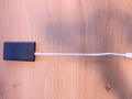 Het kabeltje is belachelijk, hij is plat, dat is prima maar helaas wit en hij is zo achterlijk kort dat hij boven de grond blijft hangen als ik hem oplaad.
