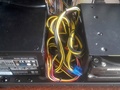 Vervolgens is het tijd om alle kabels aan te sluiten. Aanvankelijk leek dit een makkelijk klusje, de gaten in het binnenste zijpaneel zijn ruim, en de meeste aansluitingen zitten dichtbij de voeding. Misschien is dit juist waarom de kabels inbouwen zo'n karwei is, de stugge voedingskabels zijn niet geschikt om in de krappe naar de drivecage geleid te worden, en eigenlijk alle kabellengte die je niet gebruikt moet ofwel tussen de voeding en de drivecage gepropt worden, ofwel tussen de achterste zijpanelen in. Als het eenmaal op z'n plaats zit ziet het er niet heel slecht uit. Het rechter zijpaneel kostte ook wat moeite om weer op z'n plek te krijgen, maar bolt niet uit. In totaal ben ik ongeveer een uur bezig geweest met inbouwen, zonder dus een koeler te hoeven monteren, en met een simpel systeem.