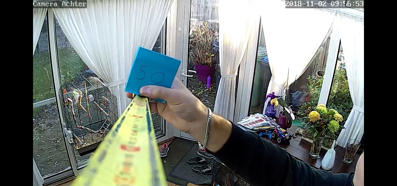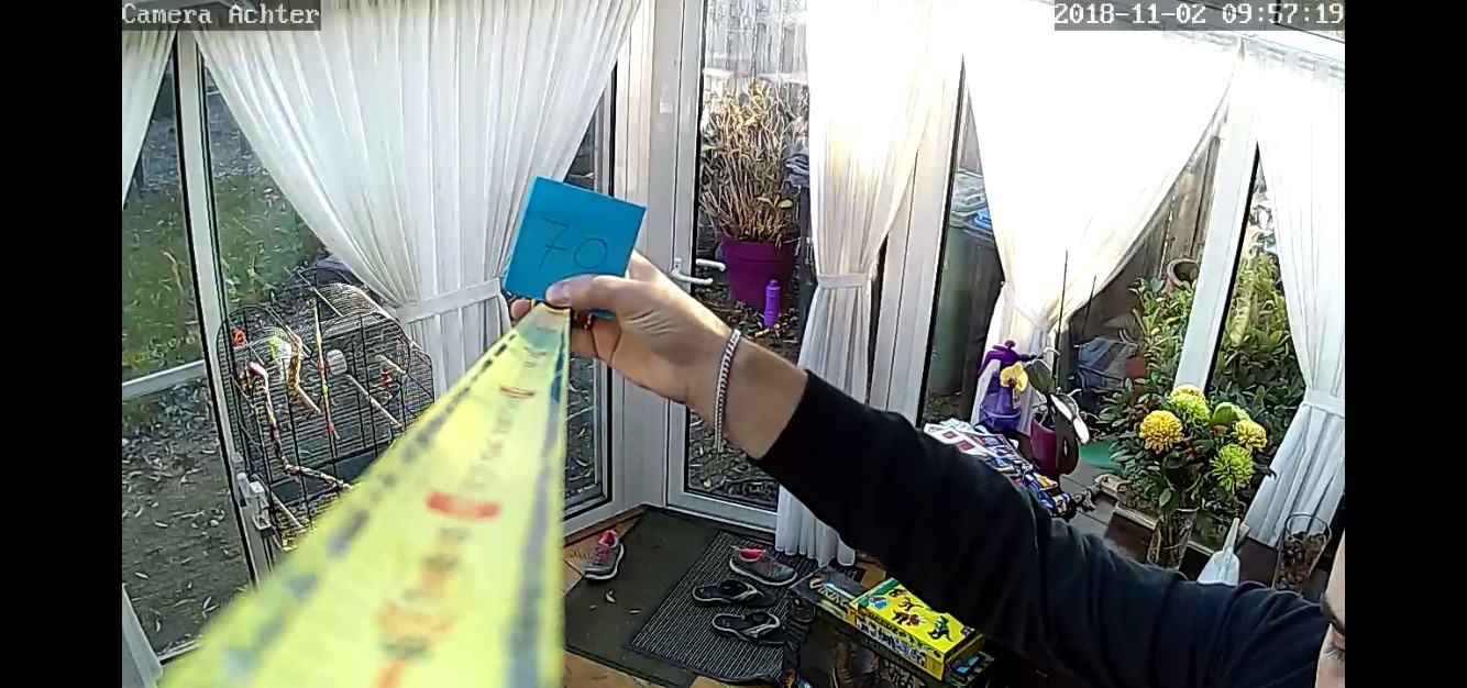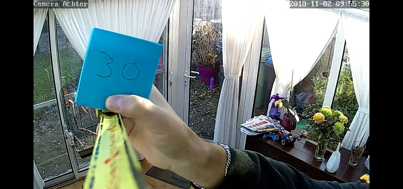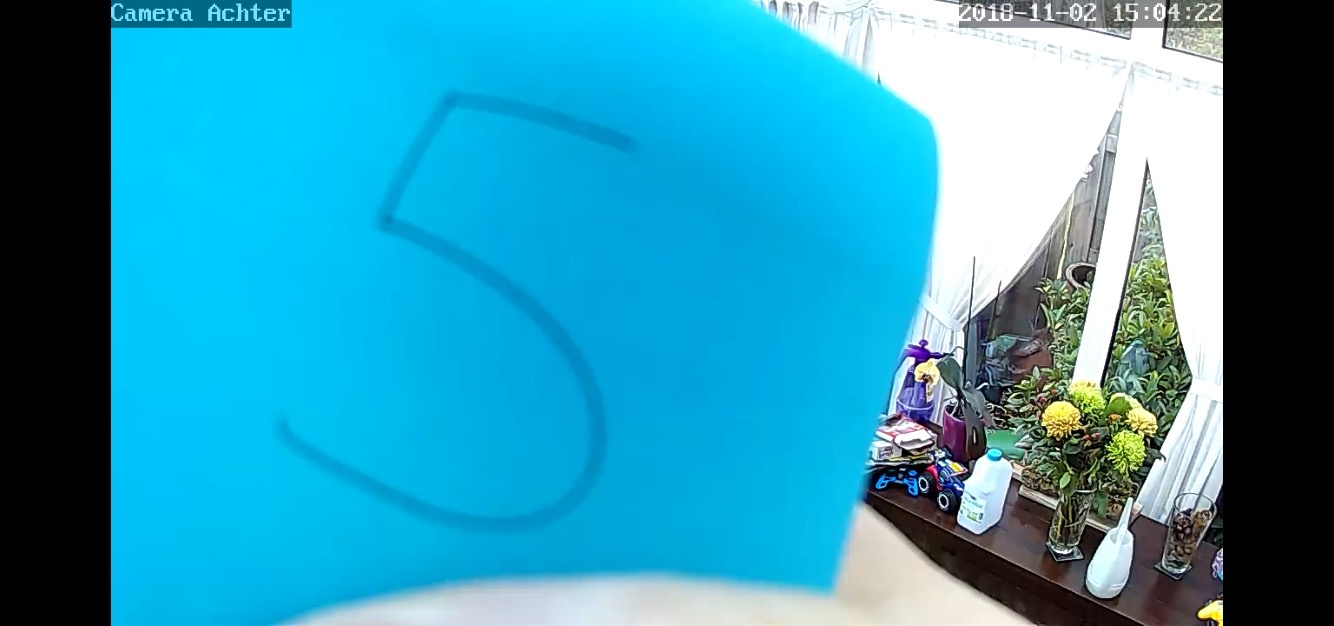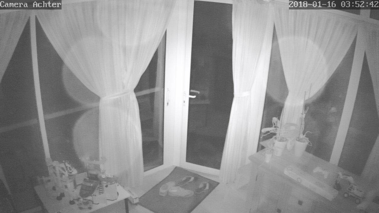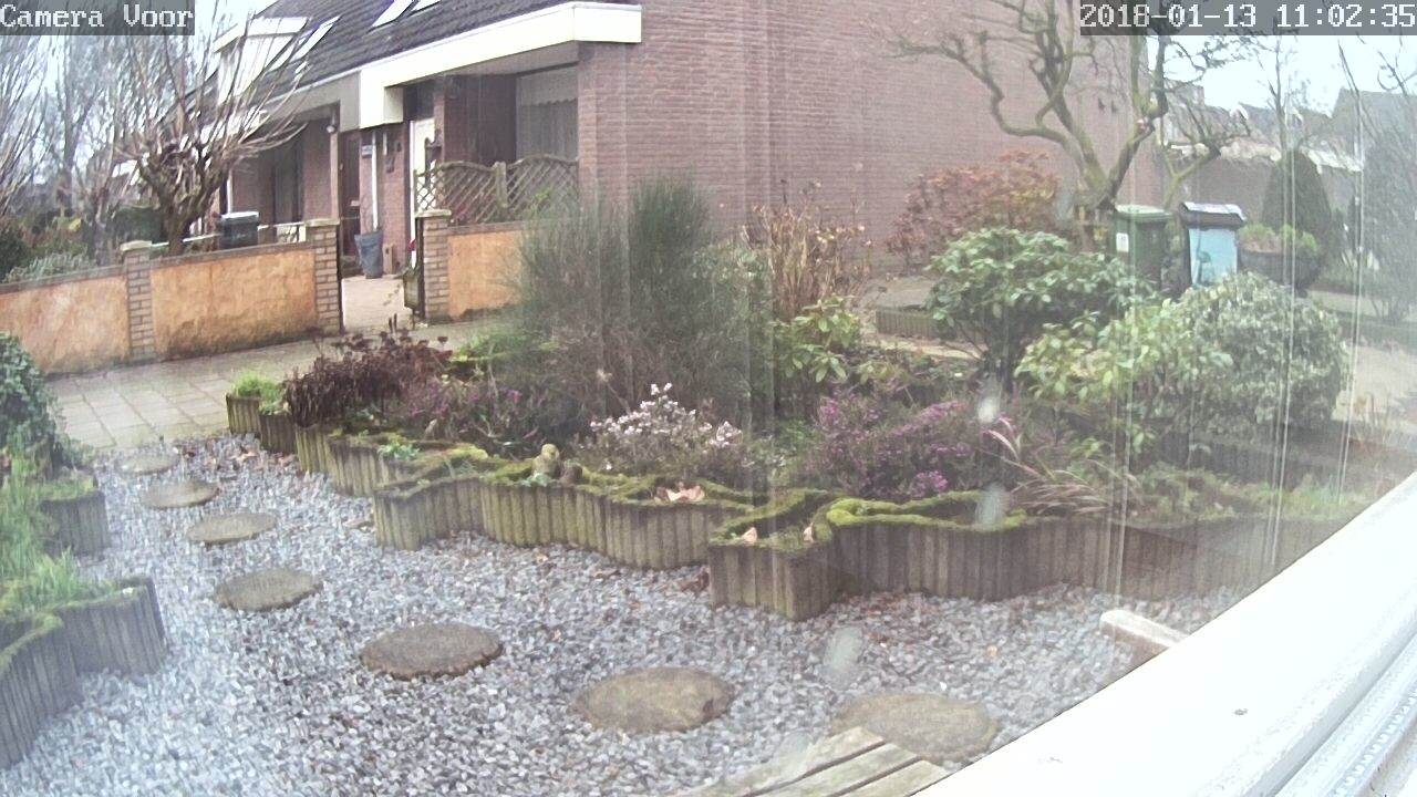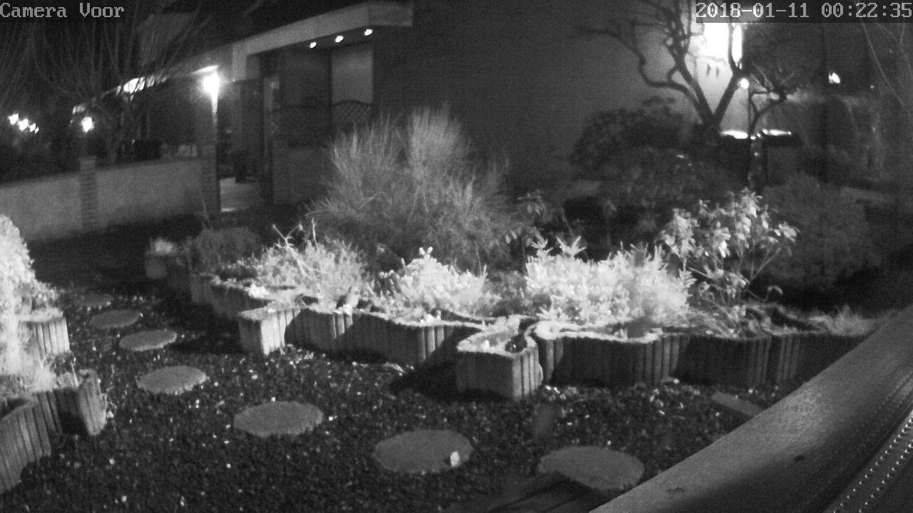 Deze camera's zijn voor binnen bedoeld. Buiten ophangen is dus zeker niet aan te raden want de behuizing is alles behalve waterdicht. Om toch beelden van de voortuin/voordeur op te kunnen nemen heb ik 1 camera achter het raam staan. Infrarood en glas zijn echter geen vrienden want infrarood komt nauwelijks door glas. Als je de IR leds dus inschakeld terwijl de camera direct achter een raam staat, dan wordt al het IR licht gereflecteerd waardoor je de camera verblindt.