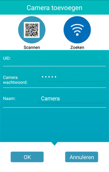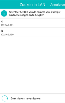 - Camera toevoegen in de app door de app naar camera's in het LAN te laten zoeken
