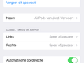 Daarna kun je de instellingen van de AirPods aanpassen door op het info-knopje in het Bluetooth menu te drukken. Hier zijn onder andere de naam en de toggles aan te passen.