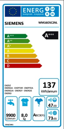 3-prijs drinkwater). Als je dit vergelijkt met de machines uit de energieklasse A (ook van Siemens), zie je dat de energie- en waterkosten op jaarbasis elkaar niet zoveel ontlopen. Het verschil in CO