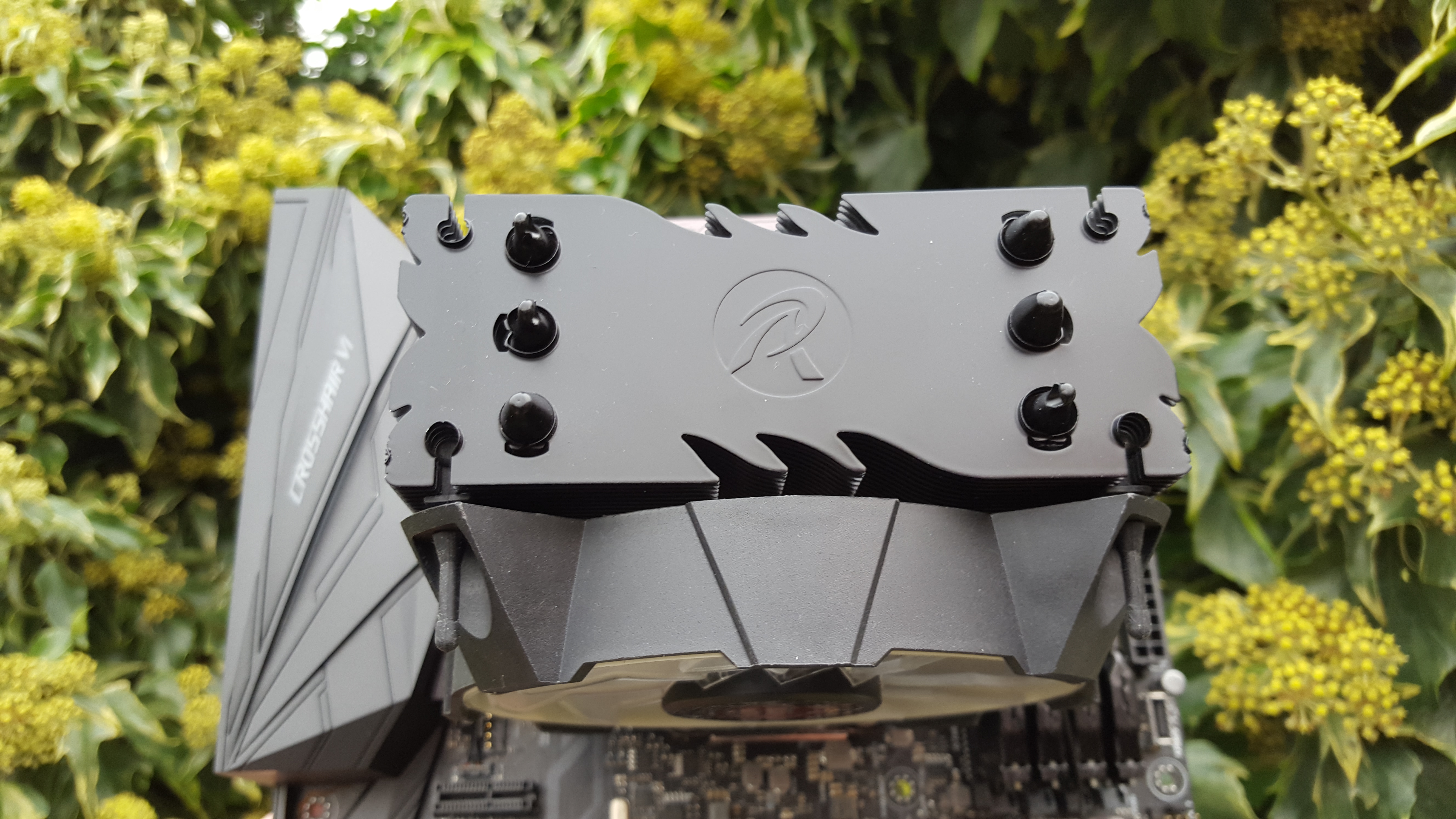 Door naar de Leto CPU-koeler. Het blok en de aluminium vinnen zijn in het zwart afgewerkt. Het oogt best netjes, tevens is de zwarte laag zorgvuldig aangebracht. Iets wat minder zorgvuldig oogt zijn de aluminium vinnen, deze zijn aan de onderzijde al een beetje verbogen. Ook de randen van de aluminium vinnen zijn hier niet optimaal. De uiteindes van de heatpipes wijken wat af qua vorm, hier oogt het ook wat rommelig. Voor de werking van de CPU-koeler zal het geen drastische temperatuurverschillen opleveren. Toch zijn het puntjes die opgemerkt moeten worden. Afwerking laat in dit budgetsegment vaak te wensen over. Op de bovenste en onderste koelvin vinden we het Raijintek logo terug.