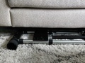 Op de foto is te zien dat de wheel stand volledig is ingeklapt. Deze kan nu makkelijk onder de bank worden opgeruimd.