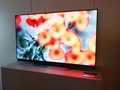 Hoewel de W7 de show steelt met zijn enorm dunne paneel die je letterlijk aan de muur plakt, trekt de E7 toch ook mijn aandacht als het realistischere broertje die gestoeld is op exact dezelfde techniek. De E7 is alleen vormgegeven als een reguliere TV zoals we die al jaren kennen, met aan de onderkant van de TV een iets dikker gedeelte waar de elektronica is gehuisvest. Wat ook opvalt aan de E7 is de soundbar aan de onderkant van het paneel. Ik vind deze erg mooi geïntegreerd in het design en het geheel geeft een prettig understated indruk door het matte zilver wat gebruikt is in de voet en de grill van de soundbar.