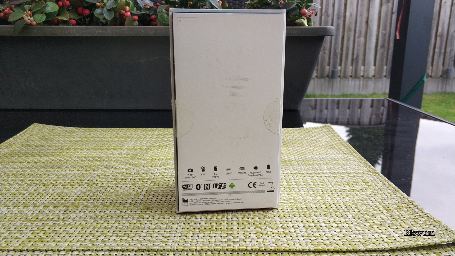 Net als de voorgaande Xperia's, is op de witte verpakking het merk "Xperia" in het zilver weergegeven. Op de achterkant zijn de belangrijkste specificaties te vinden, zoals de processor, opslagcapaciteit en het schermformaat. Als je de doos op de rug legt, dan kun je aan de voorkant lezen dat het hier om een Xperia XZ1 Compact gaat.