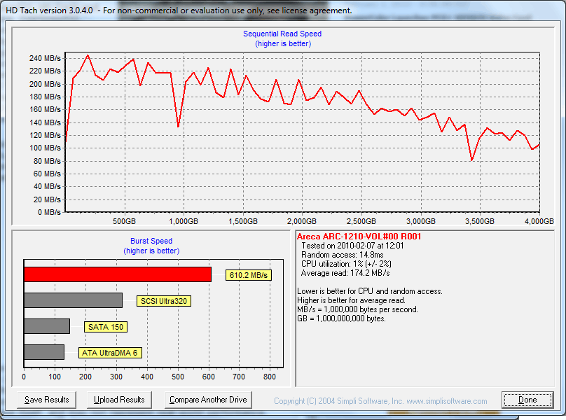 Ter informatie heb ik de resultaten van de andere 3 2TB schijven op de Areca controller in RAID 5 ook meegenomen.